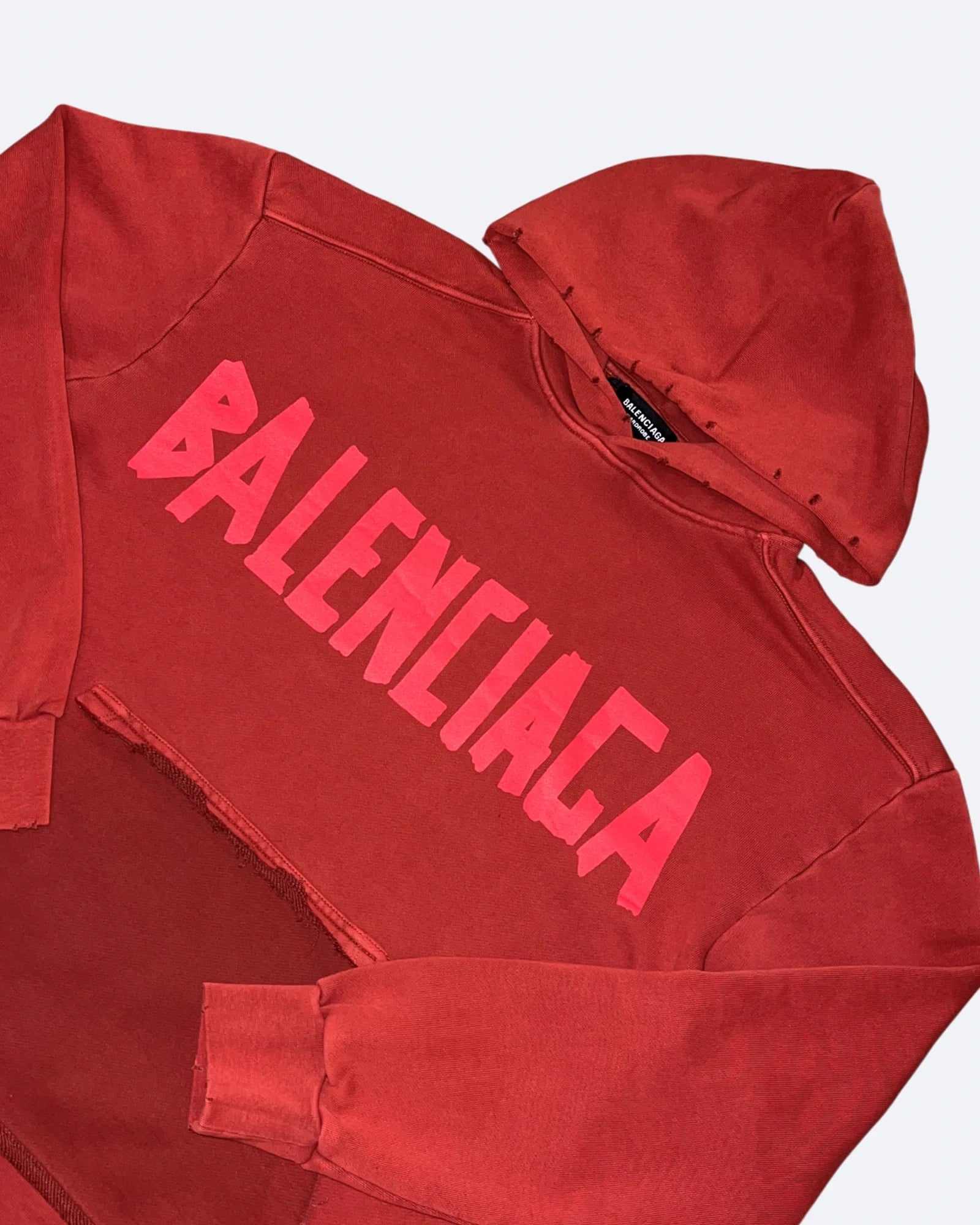 Balenciaga - Red Tape Distressed Hoodie - Washed Red