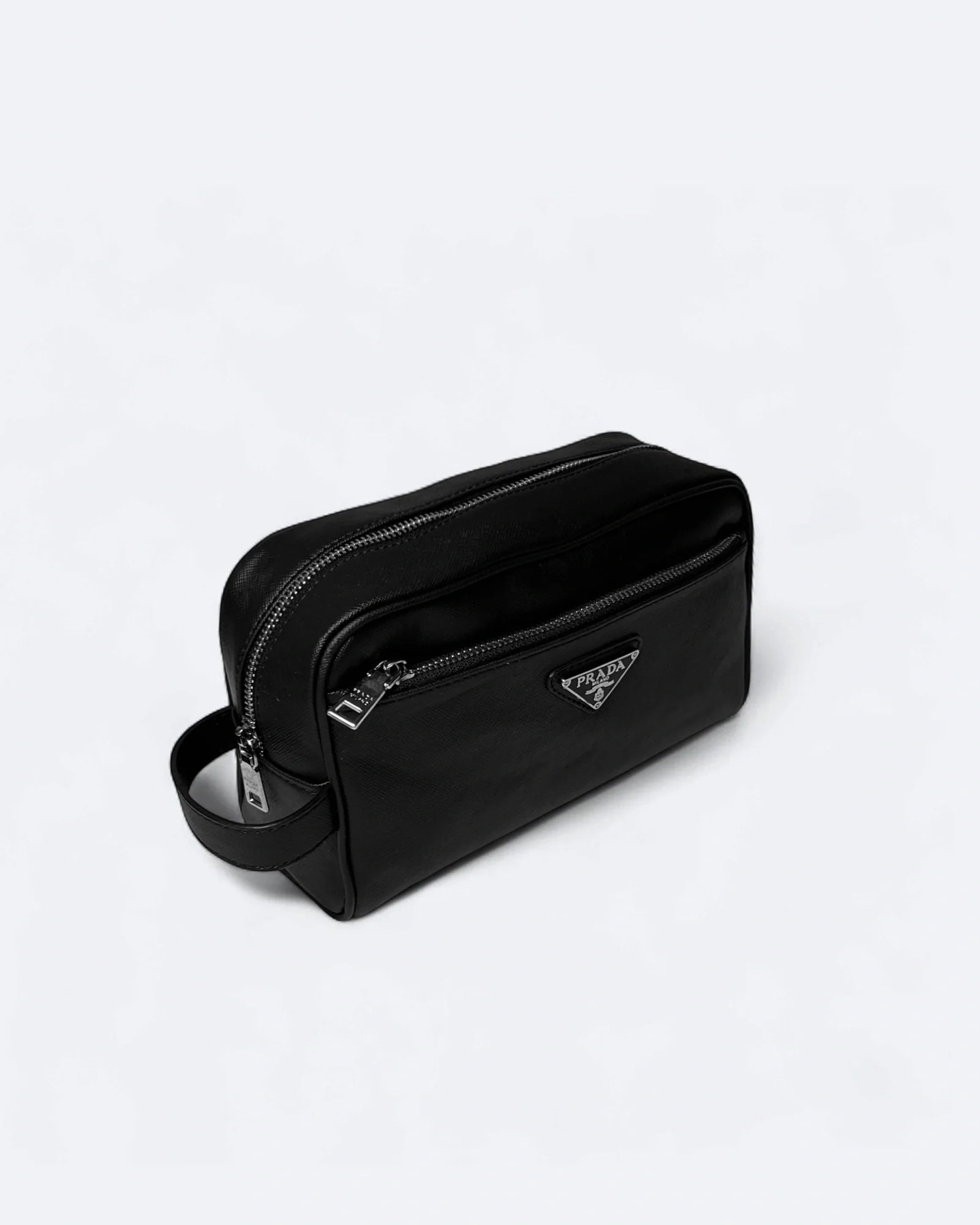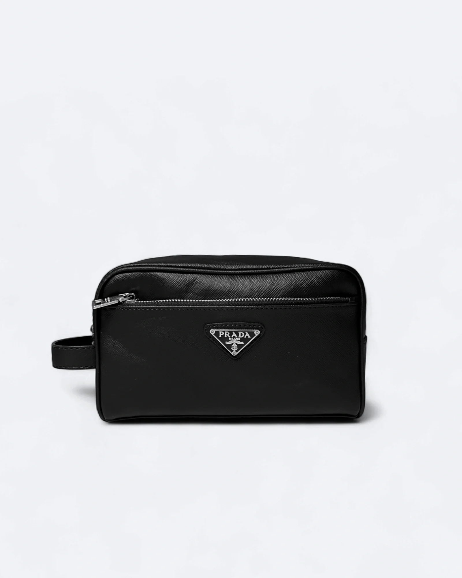 Prada - Logo Plate Hand Pouch Bag - Black